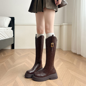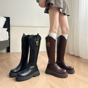 雅丹风胖mm长筒靴女厚底粗腿骑士靴2025新款大筒围高筒大码女靴子