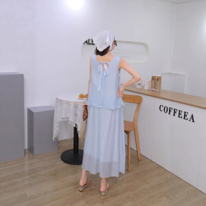 实拍白色木耳边拼接背心套装裙女夏季2025新款超仙假两件连衣裙
