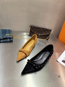 欧洲站女鞋25秋时尚柔软蝴蝶结软羊猄皮尖头浅口舒适平底工作单鞋