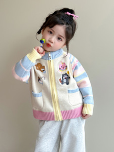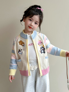 女童毛衣开衫春秋款2025新款儿童洋气时髦上衣秋装女宝宝卡通外套