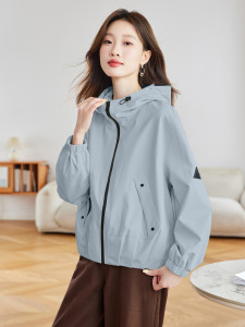 冷淡风短款冲锋衣2025秋新款女装简约时尚休闲小个子连帽风衣外套