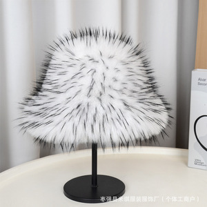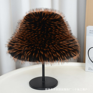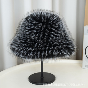 冬季帽子渔夫帽女高级感圆顶显脸小盆帽仿皮草加厚保暖毛绒帽子