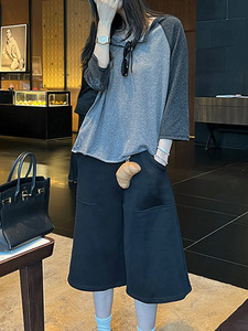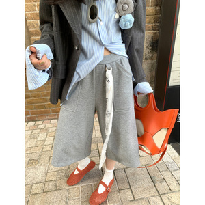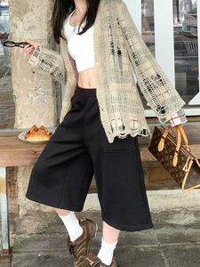 槿一大口袋七分裤女秋季宽松运动短裤直筒阔腿裤美式复古裤子2025