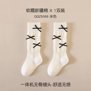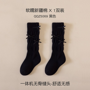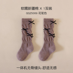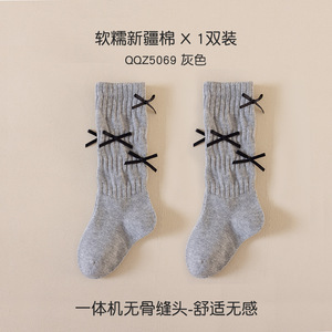 时尚蝴蝶结儿童堆堆袜 潮流ins女童高筒袜子小腿袜条纹显瘦舞蹈袜