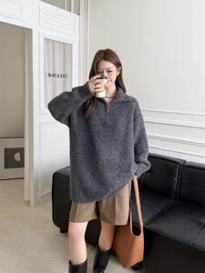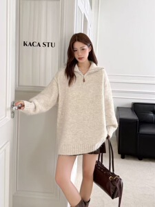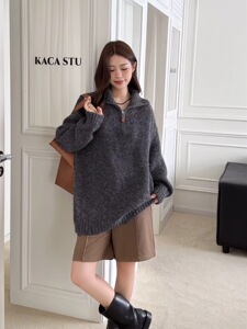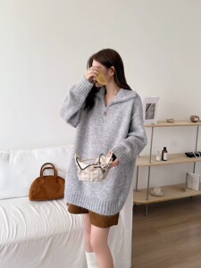 濮院羊毛衫慵懒风老钱风高品质宽松中长款毛衣上衣韩系风秋冬女装