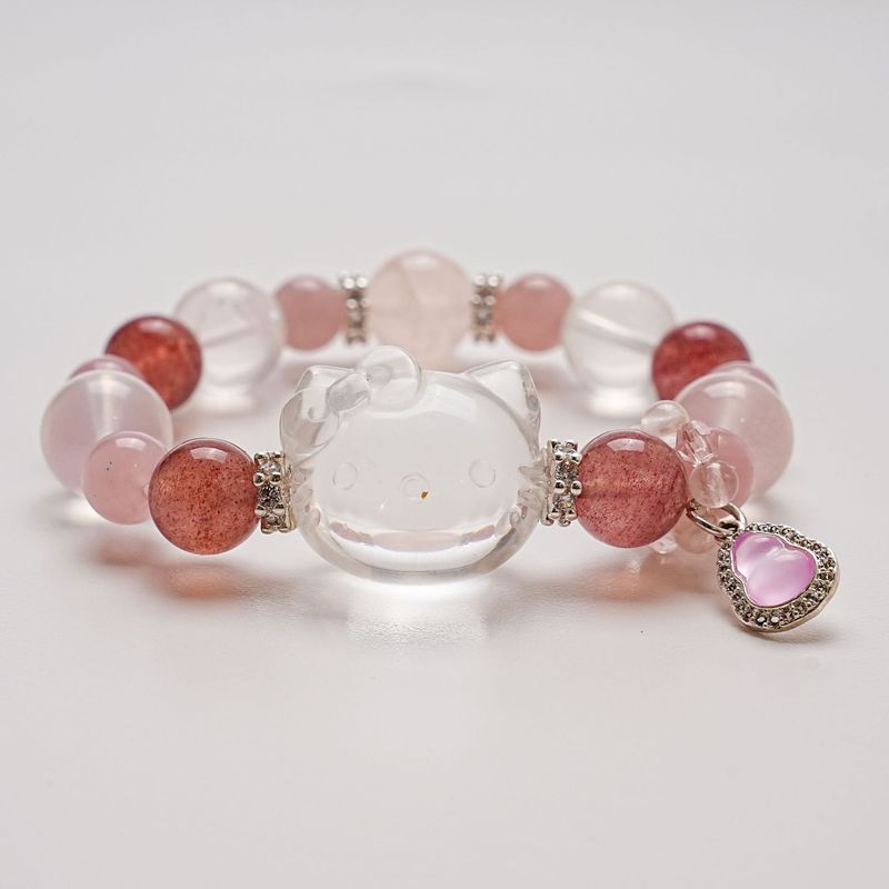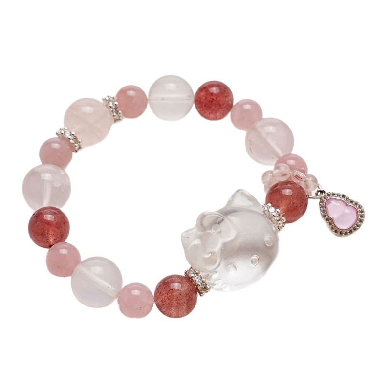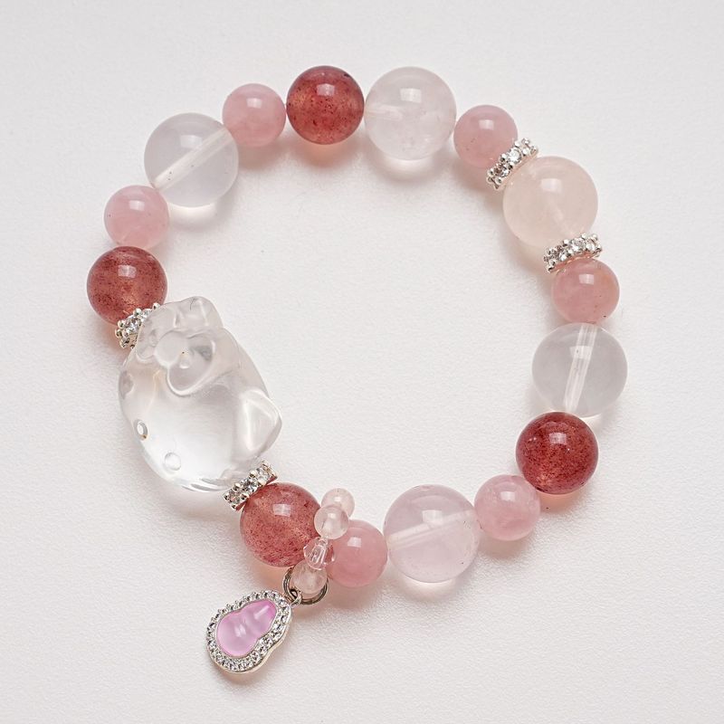 【暗似黛绿】天然紫马粉水晶手串女款百搭草莓晶冰橘粉手链批发
