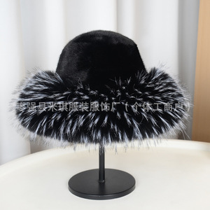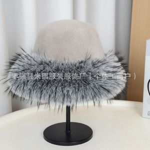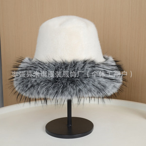 长毛绒渔夫帽秋冬季仿皮草盆帽加厚保暖女士帽子百搭护耳蒙古帽