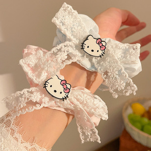 蕾丝花边kt大肠发圈蝴蝶结卡通可爱少女猫咪头绳甜美马尾皮筋发饰