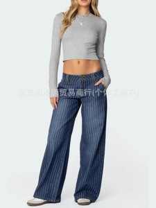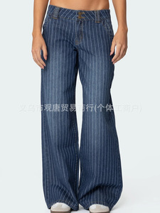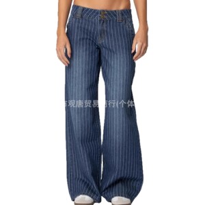 y2k跨境欧美女装Edikted条纹低腰牛仔裤vintage宽松拖地长裤ins