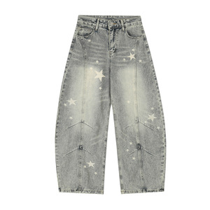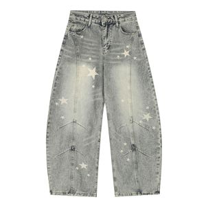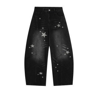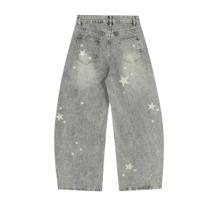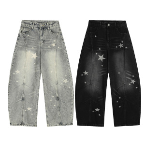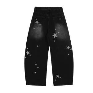 嘉衣库男装2025秋季美式复古星星印花水洗牛仔裤男女弯刀阔腿长裤