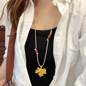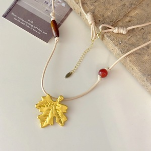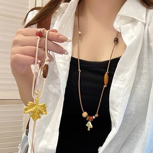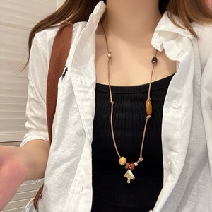 淘宝抖音爆同款轻奢复古枫叶蘑菇串珠编绳项链时尚百搭玛瑙木珠链
