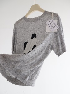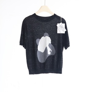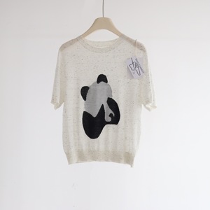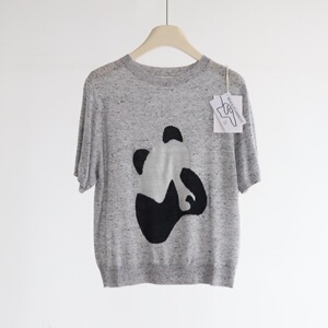 无缝一线成衣羊毛混纺缤纷纱短袖针织衫女动物提花拼色套头上衣