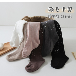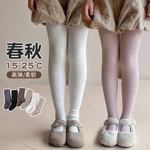 跨境批发春秋款闪钻女童打底裤细竖条高弹棉中小童紧身儿童连裤袜