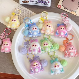 立体植绒三岁钥匙扣可爱蝴蝶结挂件毛绒球球挂饰学生包包装饰礼物