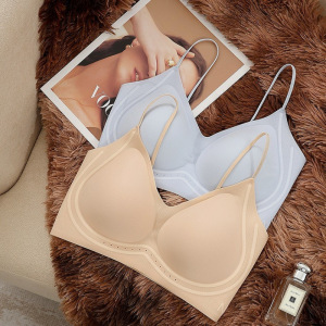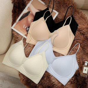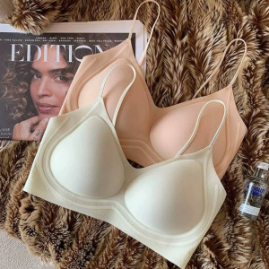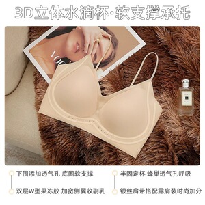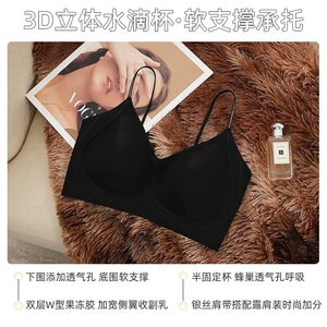 超薄凉感无痕粉底液透气内衣女小胸聚拢细肩带美背运动背心文胸夏