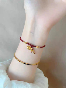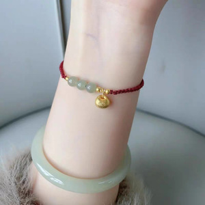 新款金色胖福手绳手工编织金珠小红绳高级感和田玉色轻奢手链礼物
