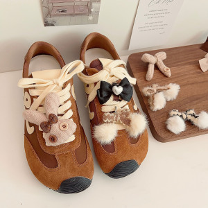森系咖色系鞋花秋冬鞋带装饰扣鞋子挂件蝴充棉毛球蝴蝶结跨境鞋扣