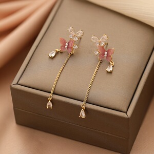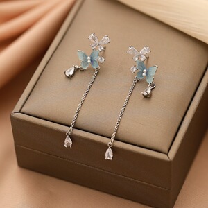 S925银针韩版新款超仙翅膀锆石不对称耳环女设计感超闪耳钉耳饰品