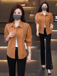 时尚长袖衬衫外套女2025秋季新款宽松遮肚子显瘦设计感休闲衬衣潮