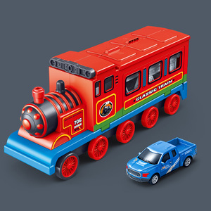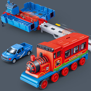 儿童变形弹射轨道火车玩具折叠收纳运输车小汽车惯性车男孩玩具车