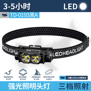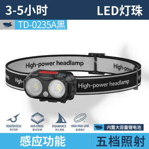 TD-0193迷你双灯大泛光头灯-黑色A款【内置电池1200MAH】