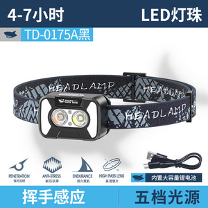 TD-0175三色光源感应式头戴灯【内置电池800MAH】