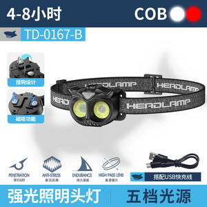 TD-0193迷你双灯大泛光头灯-黑色B款【内置电池2000MAH】