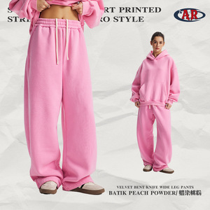 2025秋冬新款加绒加厚炒雪花男休闲裤 洗水做旧弯刀阔腿男女长裤