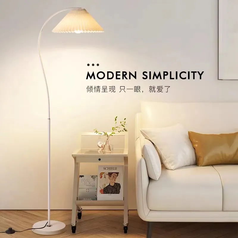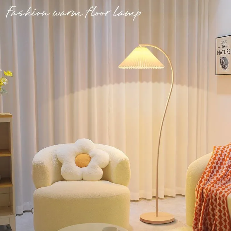 【爆款】落地灯客厅高级奶油客厅卧室床头立式台灯日式百褶氛围灯
