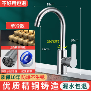 全铜厨房水龙头冷热洗菜盆不锈钢水防溅洗手池洗碗单冷旋转家用