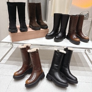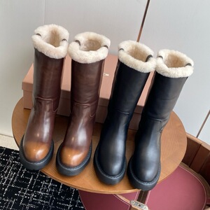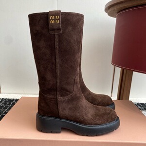 阿miu~25ss秋冬超热走秀款圆头粗跟中筒靴时髦百搭时装靴