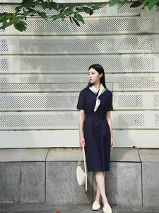 禾 女装2025夏季全棉泡泡绉中长连衣裙 不退不换450