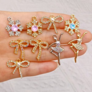 镶钻蝴蝶结合金吊坠 时尚DIY饰品配件手链项链耳环钥匙扣挂件配饰