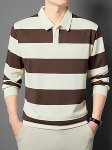 2025秋季新款条纹毛圈POLO衫男中青年翻领宽松休闲拼色体恤衫跨境