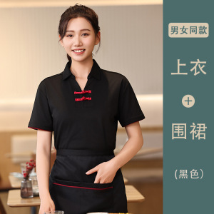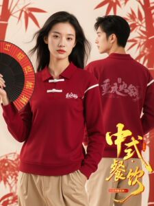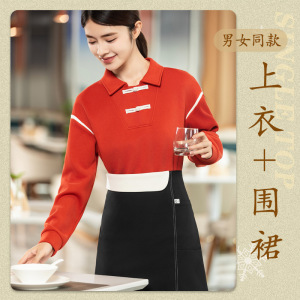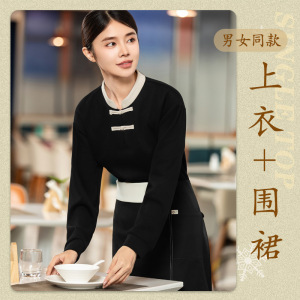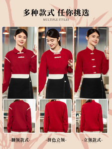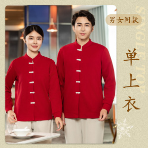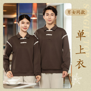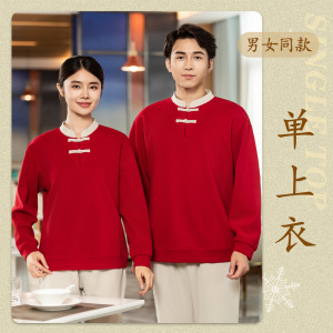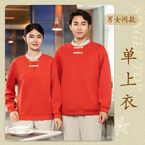 新中式餐饮服务员定制卫衣秋冬季茶楼火锅店中餐厅盘扣长袖工装男