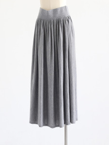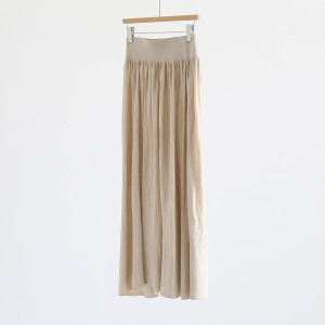 秋冬法式气质时髦高腰宽腰头褶皱针织大摆裙纯色中长款显瘦半身裙