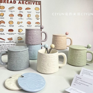 陶瓷大容量马克杯家用喝水水杯高颜值情侣简约新款带盖勺早餐杯子