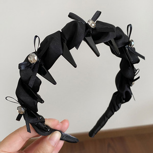 蓬松高颅顶波浪发箍女新款水钻蝴蝶结缠绕头箍甜美百搭洗脸发卡子