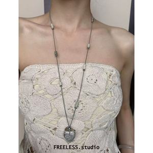 原创设计进口捷克琉璃爱心毛衣链爱心吊坠轻奢高级长款钛钢项链女