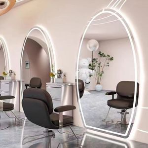 网红潮款理发店发廊专用美发剪发烫染镜台壁挂款式带灯