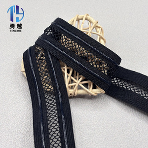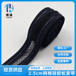 2.5厘米黑色防滑滴胶松紧带镂空设计止滑带户外运动发带橡筋辅料