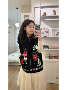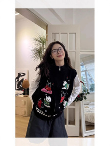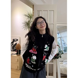 可爱卡通小狗刺绣针织女装2025年早秋季减龄宽松叠穿上衣