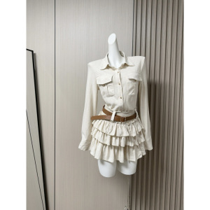 法式两件套简约气质高级松弛感正肩衬衫上衣+休闲百搭蛋糕裙套装
