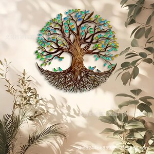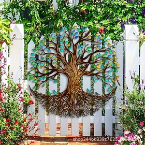 跨境爆款金属铁艺彩色生命树剪影创意墙壁壁画客厅卧室墙面艺术装