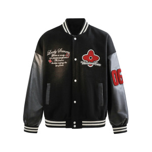 捷展YOU货|美式刺绣撞色PU棒球服25秋季新品街头休闲飞行夹克外套