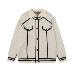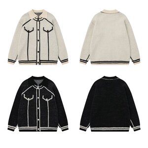 6748小香风高级感外套街潮美式街头cleanfit男式圆领针织开衫毛衣