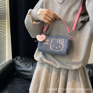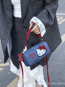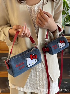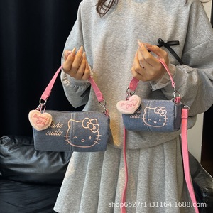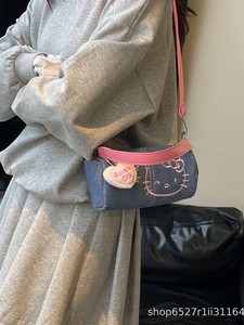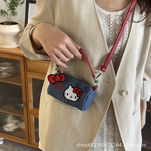 可爱卡通KT猫斜跨手提包新款时尚百搭简约牛仔单肩包少女口红包