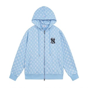 MLB高克重380连帽卫衣字母棉满印拉链开衫老花男女宽松休闲百搭