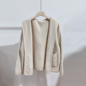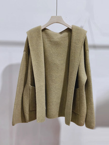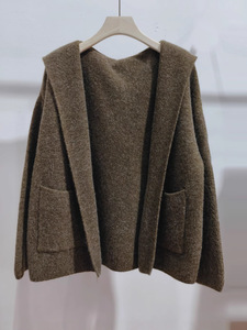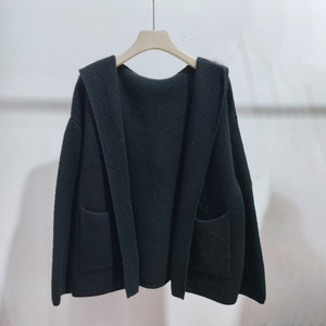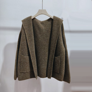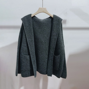 秋冬季新款短款韩系赫本风连帽针织开衫欧货小香风毛衣女披肩外套