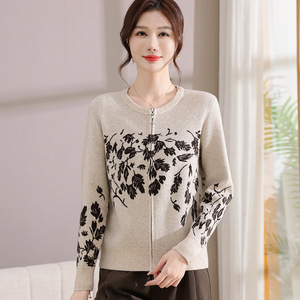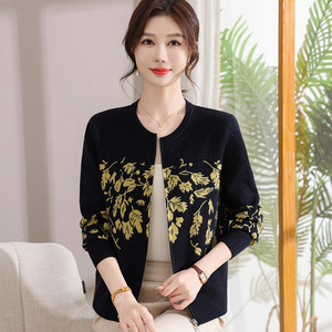 妈妈装秋冬季外套短款洋气中年春秋修身显瘦减龄百塔针织开衫外套